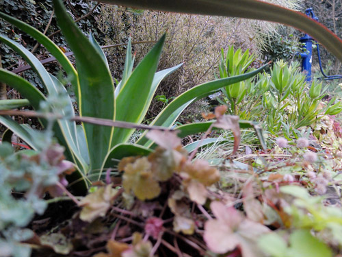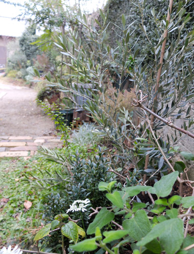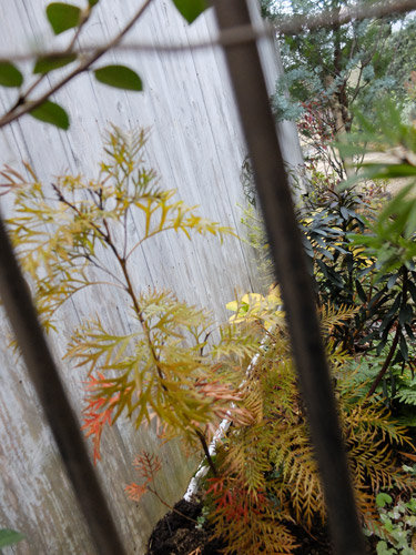四季を楽しもうかなぁと思って、落葉を混ぜて植えたんですが