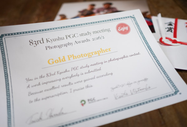 賞状の内容はよく分かりませんが、GOLD PHOTOGRAPH