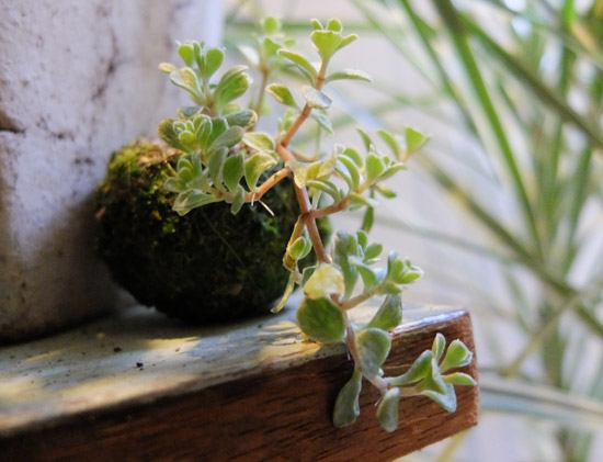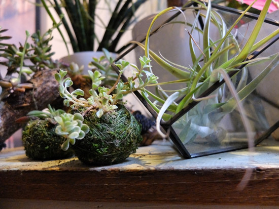 こけ玉に多肉を詰め込んで