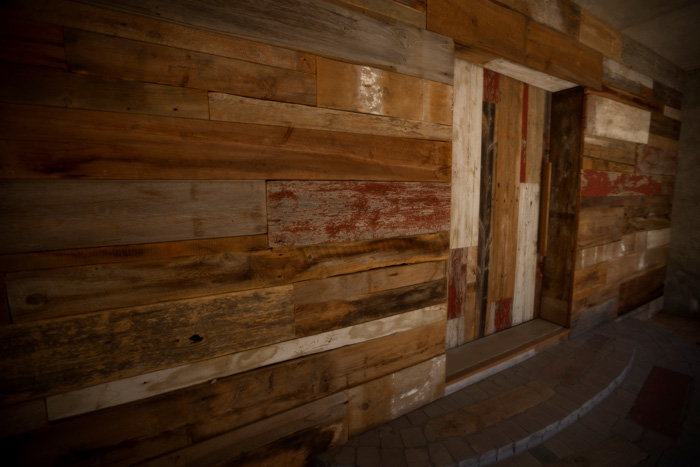 バーンウッドを貼り、床はレンガで仕上げた撮影スペースです