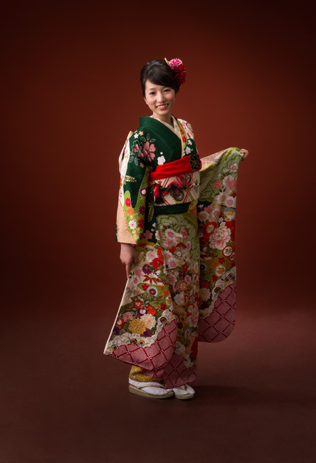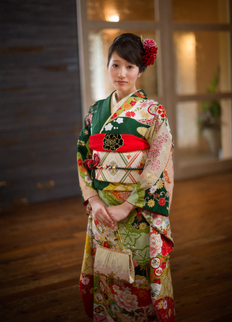 成人式のご撮影では、キレイな着物の振り付けを施し
