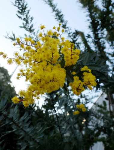 ミモザの花も色づき始めました