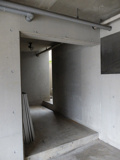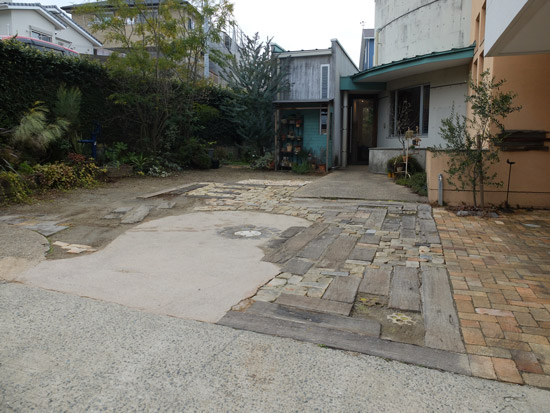 道路沿いの堀車庫の奥左側からも店内の入り口ドアに行けます