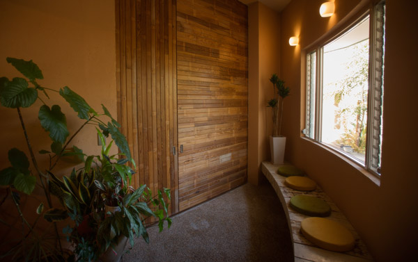 入り口のドアも古材で作ってもらいました